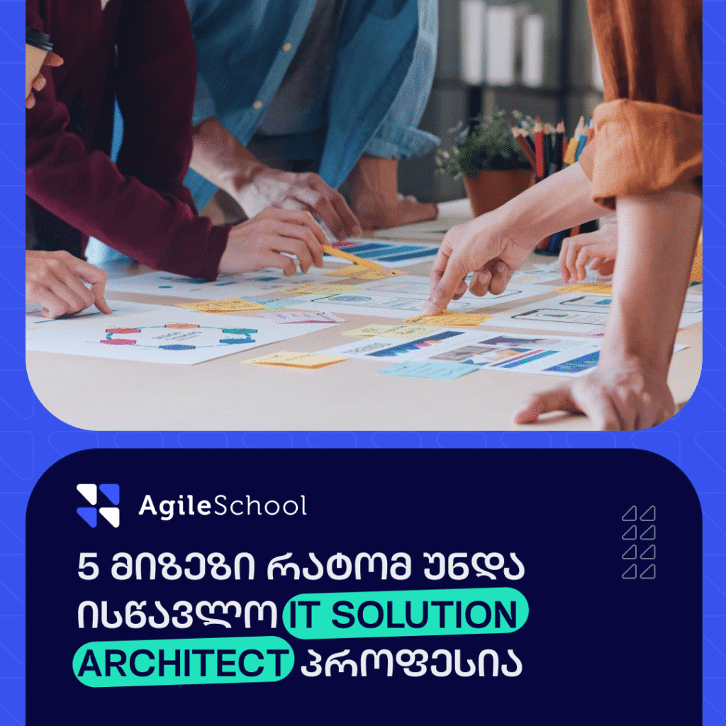 თუ ამ ხუთ პუნქტში საკუთარი პროფესიული მისწრაფებები ამოიცანი, მაშინ ეს კურსი შენი კარიერული ტრანსფორმაციის ლოგიკური შემდეგი ნაბიჯია: https://agileschool.ge/it-solution-architect/